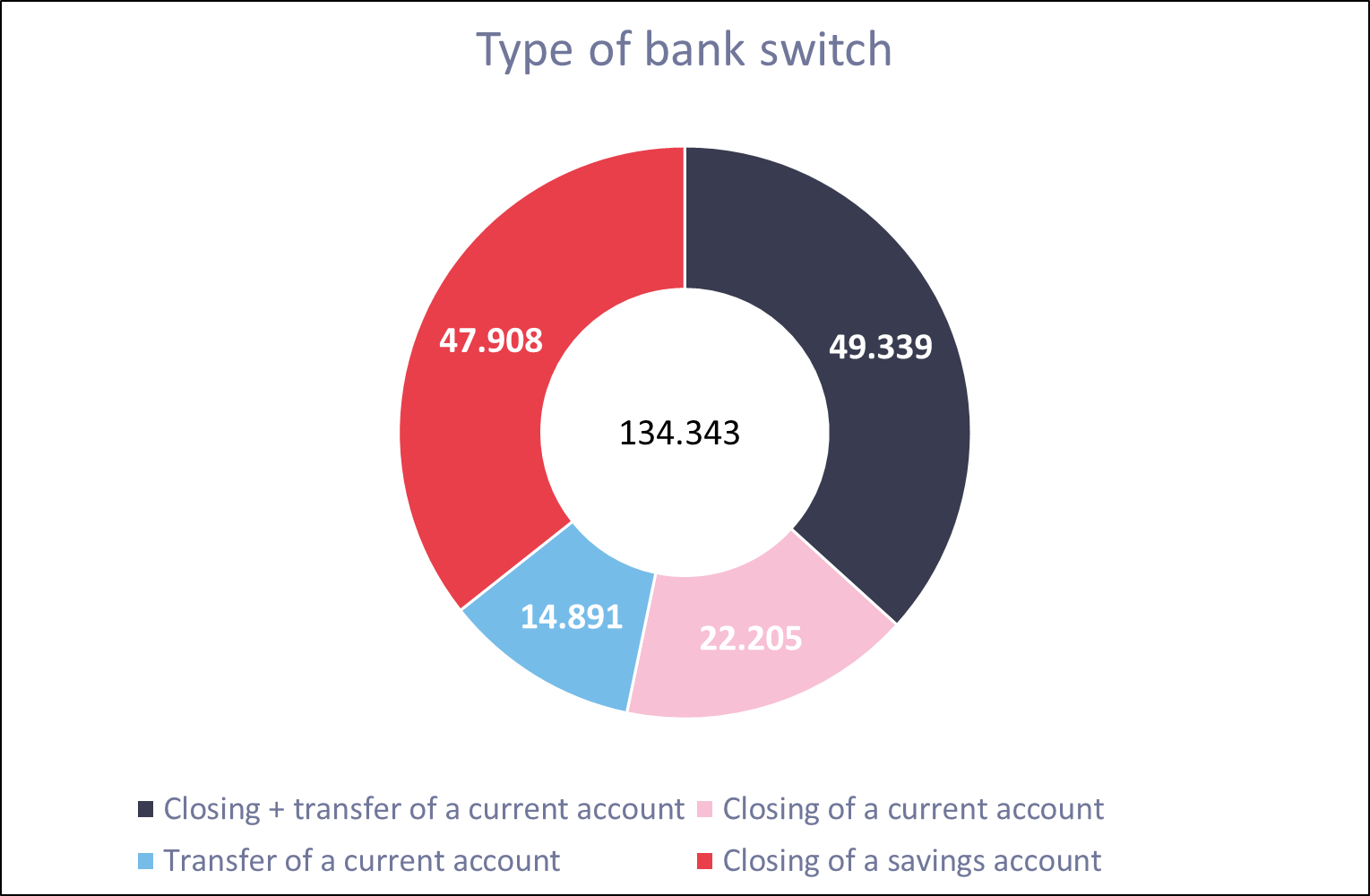 Since the launch of the bank switching service for savings accounts at the end of 2020, many customers have used it. In 2024, 47,908 customers chose to switch banks with the closing of their savings account.