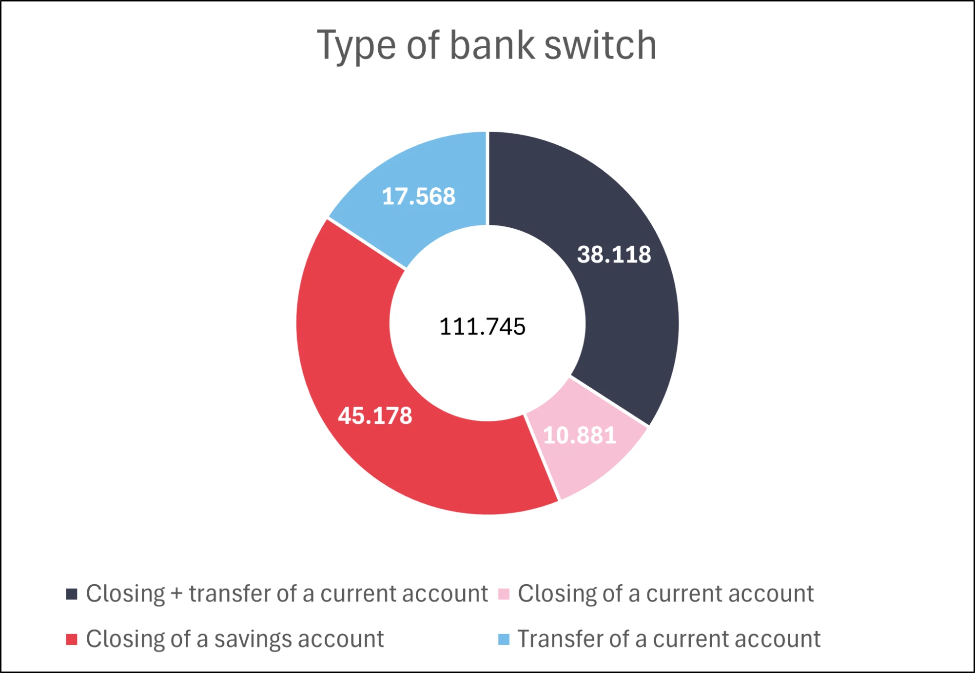 In 2025, 111,745 customers submitted a request to switch banks via the free Bankswitching service. For customers who want to transfer their current and savings accounts to another bank, the service offers a quick and easy switch without interruption of payment orders.
