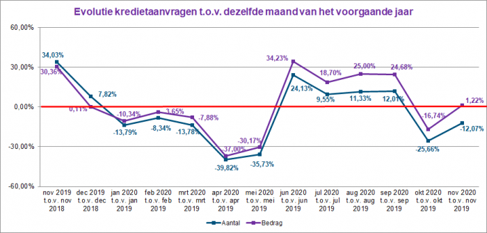The number of credit applications decreased by approximately 12% in November 2020 compared to November 2019. However, the corresponding total amount of these applications was slightly more than 1% higher.
