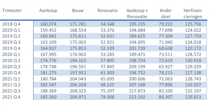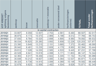 Comparison with the absolute record quarter Q4 2019 (due to the announced abolition of the housing bonus in Flanders from 2020) is difficult, but even compared to the fourth quarter of the more "ordinary" year 2018, there is still a decrease in the number of granted loans by almost 7%.