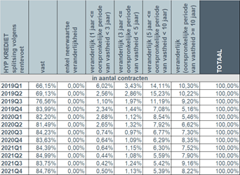 In the fourth quarter of 2021, once again, more than 9 out of 10 borrowers (93%) opted for a fixed interest rate or a variable interest rate with an initial period of interest rate stability of at least 10 years. Just over 6% of borrowers chose a variable interest rate with an initial stability period between 3 and 10 years. The number of borrowers opting for an annually variable interest rate dropped to barely 0.5%.
