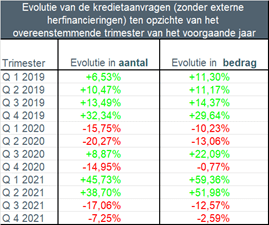In terms of amount, about 12% less credit was granted in the fourth quarter of 2021 compared to the fourth quarter of 2020. Here again, comparison with the exceptional fourth quarter of 2019 is difficult, but compared to the more "normal" year 2018, there is an increase of almost 8%.