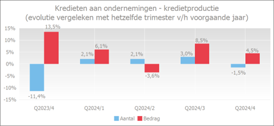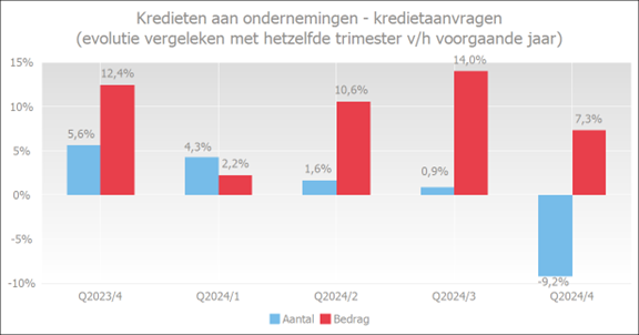 In the fourth quarter of 2024, there were 9.2% fewer business loans requested than in the same period of 2023. The total amount of these requested credits did increase by 7.3%.
