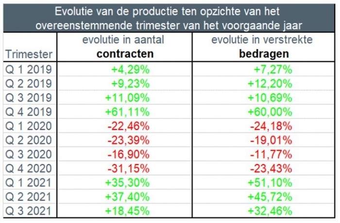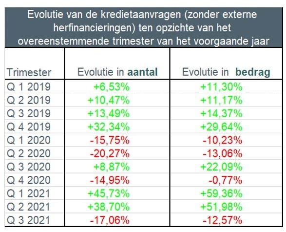 Furthermore, in the third quarter of 2021, the number of external refinancing loans continued to increase by 7.5%. More specifically, just over 10,000 external refinancing loans were granted for a total amount of nearly 1.3 billion EUR.