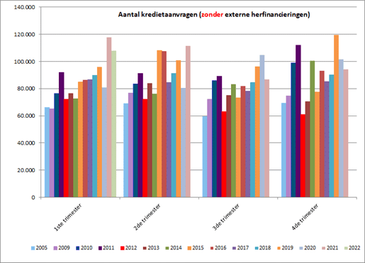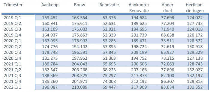 Bij deze cijfers zijn de herfinancieringen buiten beschouwing gelaten.