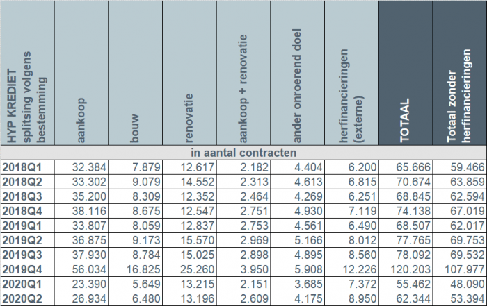 While the decrease in lending in the first quarter of the year was mainly due to the abolition of the housing bonus in Flanders at the end of 2019 and the many loans that were still concluded before the end of the year for that reason, the restrictive government measures related to the coronavirus crisis are largely responsible for the sharp decline in credit applications and lending in the second quarter. Its impact also varied significantly from month to month.