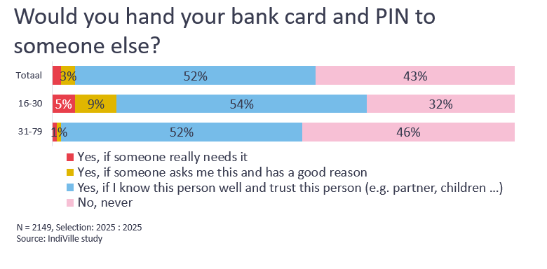 Although efforts are being made to raise awareness among young people, their vulnerability remains high. For example, 14% of young people (aged 16–30) say they are willing to hand over their bank card and PIN to a stranger. By comparison, this figure is 5% for the general population.
