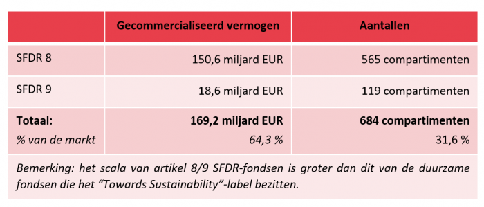 According to asset managers, nearly two-thirds of the distributed assets in Belgium are classified as Article 8 or Article 9 SFDR funds. Investors interested in sustainability can choose from 684 different funds.