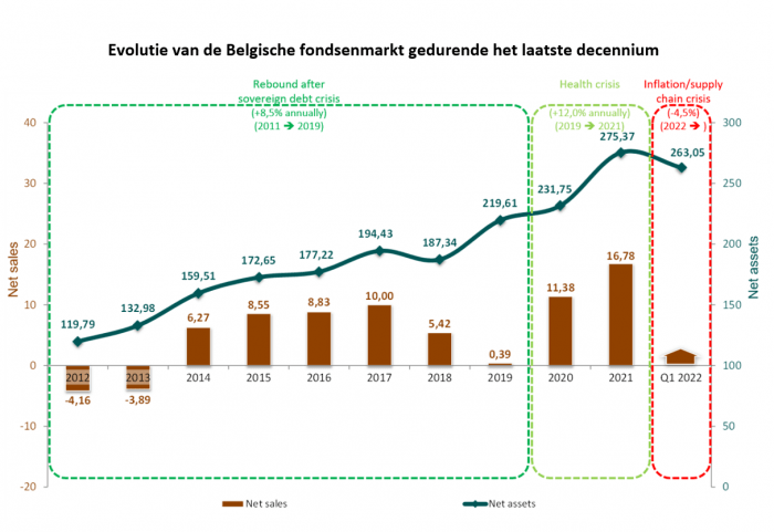 Despite the significant losses in underlying asset values, net subscriptions were still recorded in the Belgian fund market during the first quarter of 2022. This fact is also supported by statistical data from the NBB, which indicates that funds held by individuals were the fastest-growing financial asset category during the period from January to March 2022.