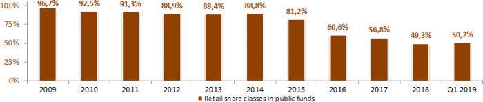 Percentage of Retail Share Classes in the Belgian Fund Market