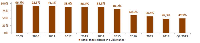 Percentage of Retail Share Classes on the Belgian Fund Market