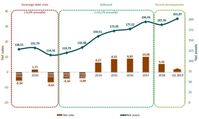 In total, the net assets of funds primarily investing in non-fixed-income securities increased by 2.7% during the third quarter of 2019, reaching a marketed assets value of EUR 160.3 billion by the end of September 2019.