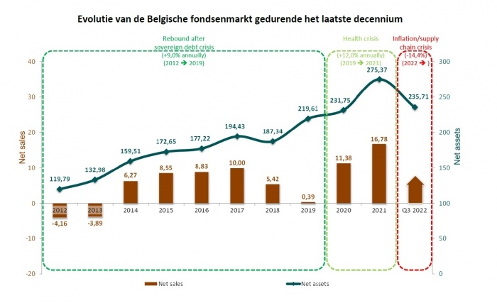 The decline in the Belgian fund market during the period from July to September 2022 is entirely explained by losses in the underlying assets during this period.