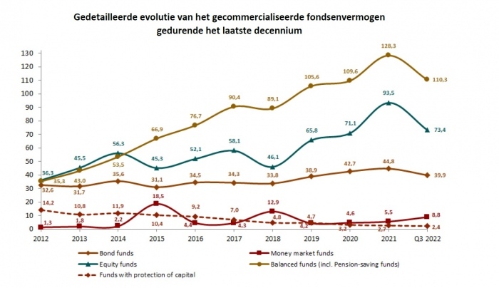 In summary, driven by losses in the underlying assets, the net assets of publicly distributed funds in Belgium were 14.4% lower at the end of September 2022 compared to the end of 2021, totaling 39.7 billion EUR. It's important to note that these losses only translate into actual capital losses when funds are sold.