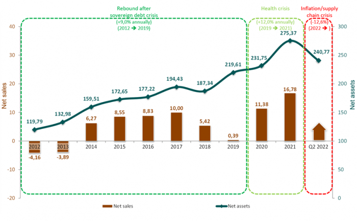 L'année 2022 a connu un début très difficile en raison de l'impact de l'inflation croissante sur l'économie mondiale, de la guerre qui se poursuit en Ukraine, des problèmes de Covid 19 et de la crise mondiale de la chaîne d'approvisionnement. En conséquence, le premier semestre de 2022 a été caractérisé par des cours négatifs.