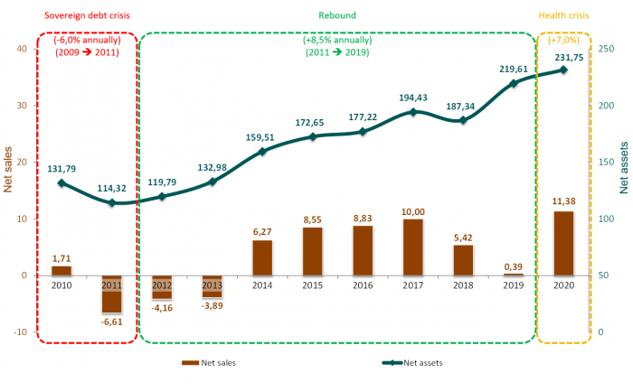Évolution détaillée de l’actif commercialisé au cours de la dernière décennie