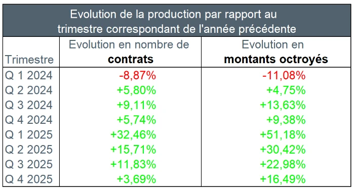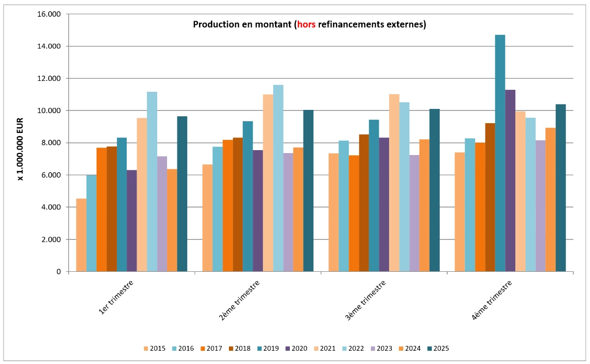 Au quatrième trimestre de 2025, près de 54.000 nouveaux crédits ont été octroyés pour un montant total de près de 10,4 milliards EUR – hors refinancements externes.