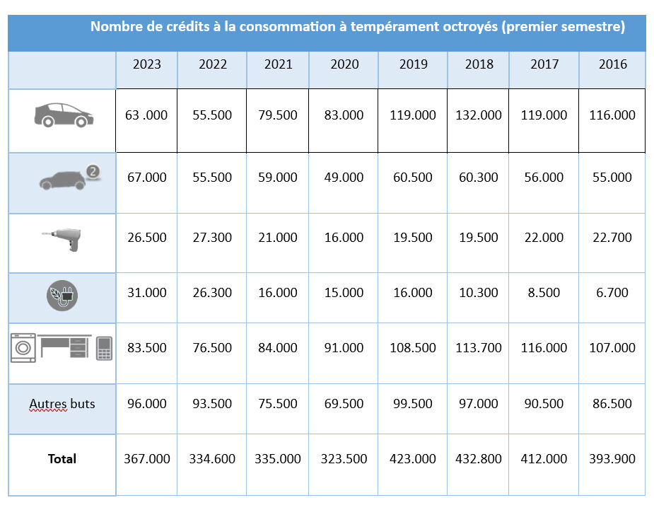 Annexe: 1er semestre 2023 - chiffres crédit à la consommation