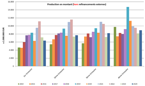 Au quatrième trimestre de 2024, 52.000 nouveaux crédits ont été octroyés pour un montant total de quelque 8,9 milliards EUR – hors refinancements externes.