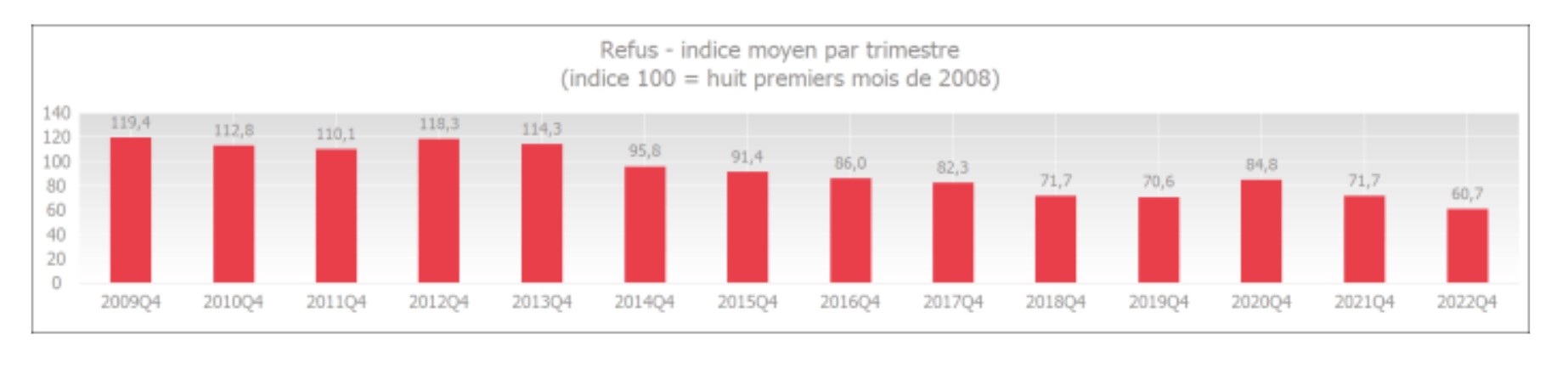 Le degré de refus est à son plus bas niveau historique pour un quatrième trimestre. Les banques ont donc continué à accorder des crédits.