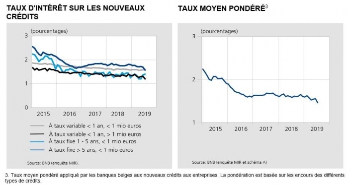 Selon les données de la BNB, le taux d'intérêt moyen pondéré sur les nouveaux crédits aux entreprises est tombé à un nouveau plancher de 1,46% en juillet 2019.