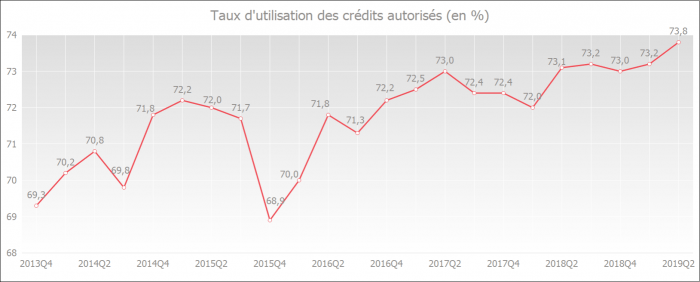 Cependant, le nombre de nouveaux crédits accordés au deuxième trimestre de 2019 s'est stabilisé par rapport au trimestre correspondant de l'année précédente. Le montant a quant à lui diminué de 2,4 %.