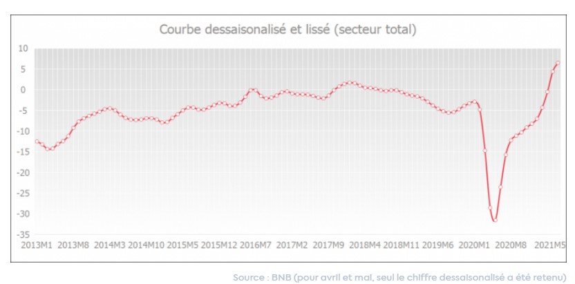 Après avoir chuté de manière impressionnante au début de la pandémie, la confiance des entreprises s’est restaurée, arborant une croissance régulière ces derniers mois. En mai 2021, la confiance des entreprises était même à son plus haut niveau depuis des années. Cela suggère que la demande de crédits d'investissement devrait connaître une reprise (puissante) dans les mois à venir.