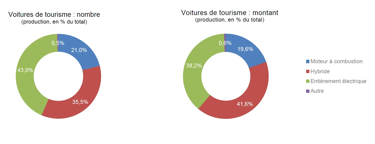 En revanche, la production de leasing de voitures de tourisme reculé de 1 % en 2025. Deux facteurs expliquent cette baisse : d'une part, on observe une tendance à l'allongement des durées de leasing, et d'autre part, le nombre de voitures de tourisme immatriculées en 2025 a été inférieur à celui de l'année précédente. Sur le nombre total de voitures de tourisme neuves et d'occasion en leasing en 2025, 21 % étaient équipées d'un moteur à combustion. Les voitures hybrides représentaient 35 %, tandis que 43 % des voitures de tourisme en leasing étaient entièrement électriques. L'électrification reste donc une caractéristique majeure du marché du leasing.