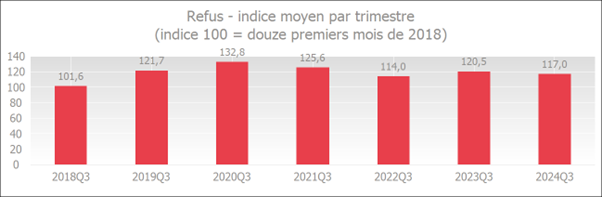 Le degré de refus au troisième trimestre 2024 est le troisième plus bas de tous les troisièmes trimestres précédents depuis 2018.