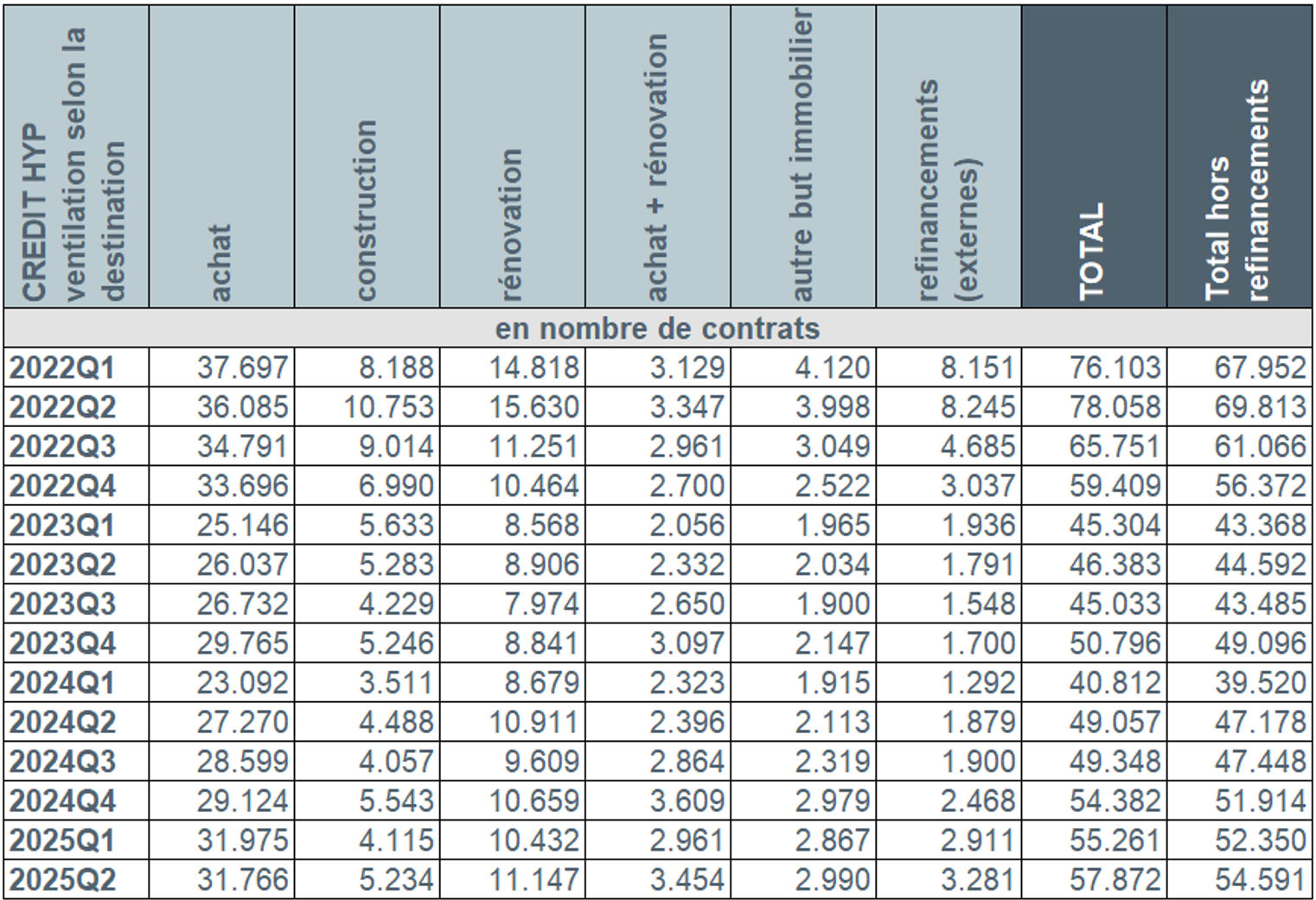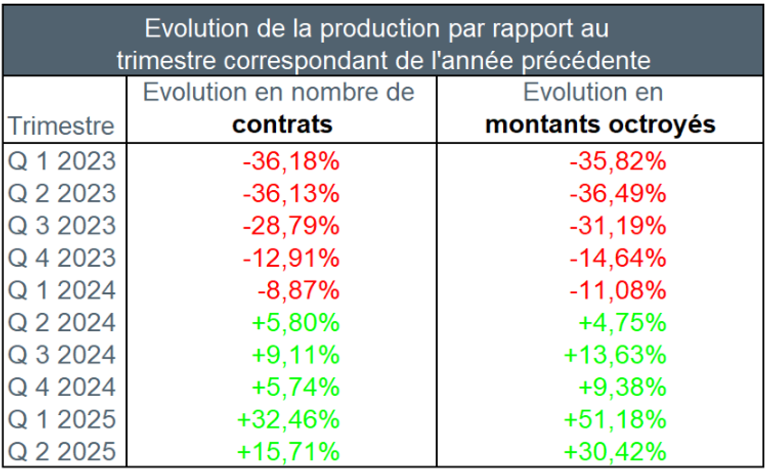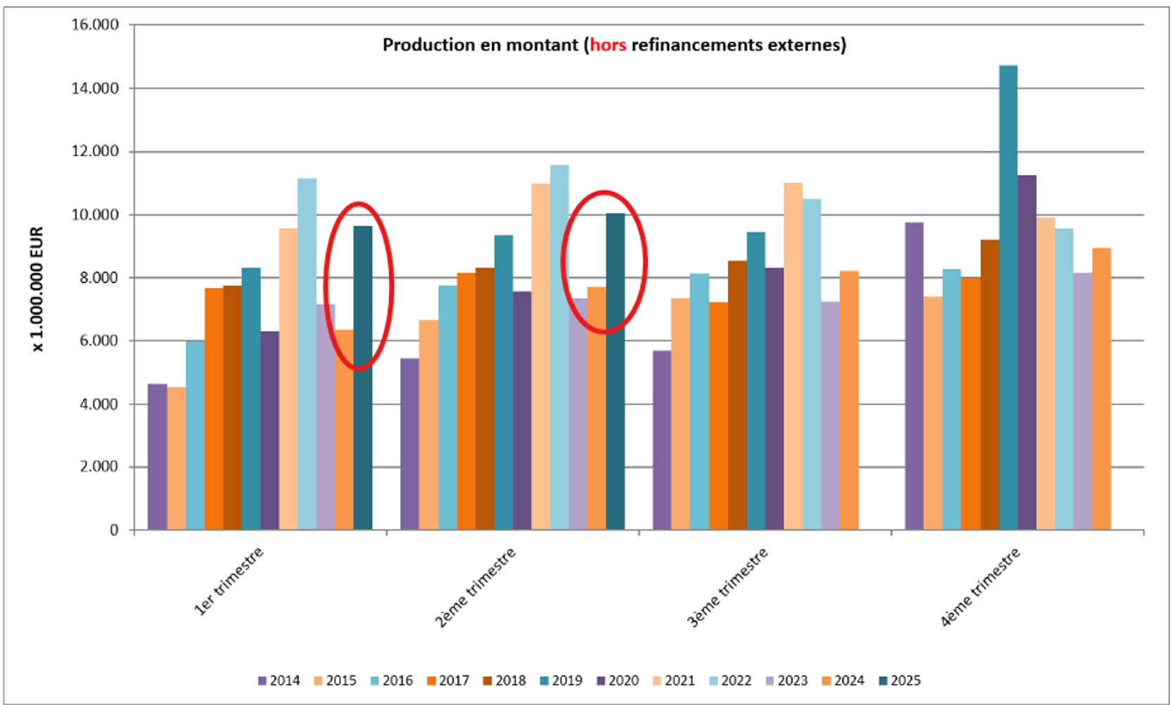 Le nombre de demandes de crédit, hors celles relatives aux refinancements externes, a connu au deuxième trimestre 2025 une augmentation d’environ 7,7% par rapport au même trimestre de l’année précédente. Le montant sous-jacent des demandes de crédit a également signé une augmentation de 15,7%. Cela confirme une tendance durable à la hausse dans les demandes de crédit (Hors refinancements externes). Il s'agit d'une période que nous n’avions plus connue depuis l’année 2021, et cela donne confiance en l’avenir.