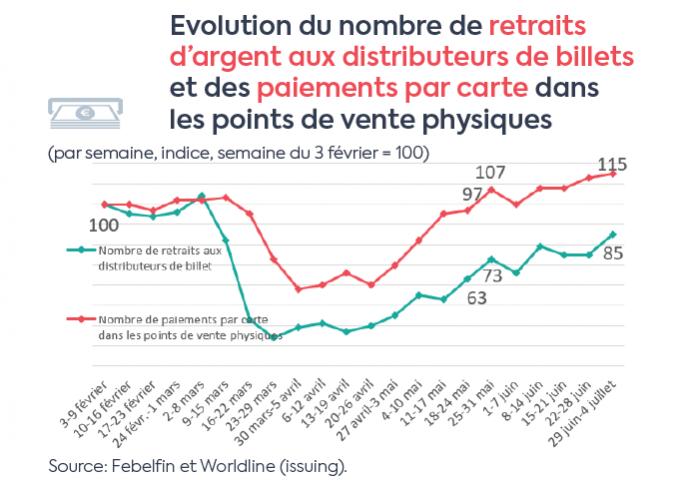 En juin de cette année, 35% de l’ensemble des paiments ont été effectué sans contact. A titre de comparaison, en février, ce pourcentage était de 16, et en mai de 32.