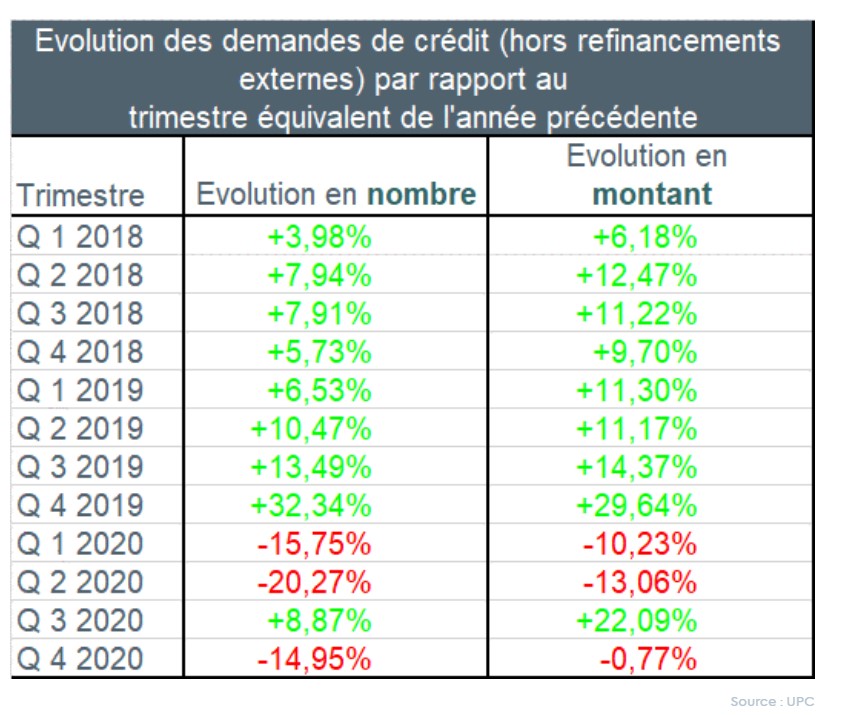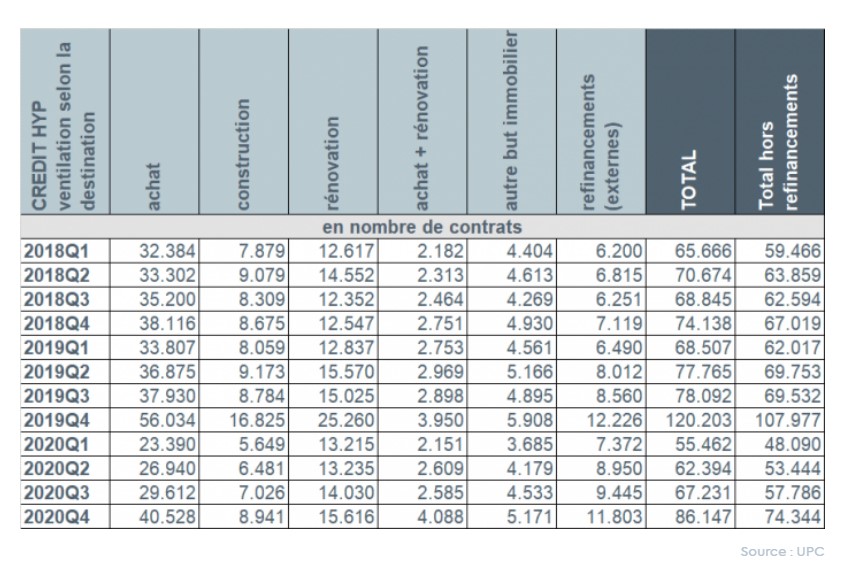 Par ailleurs, au cours du quatrième trimestre de 2020, le nombre de demandes de refinancements externes a de nouveau connu une augmentation de 6%.