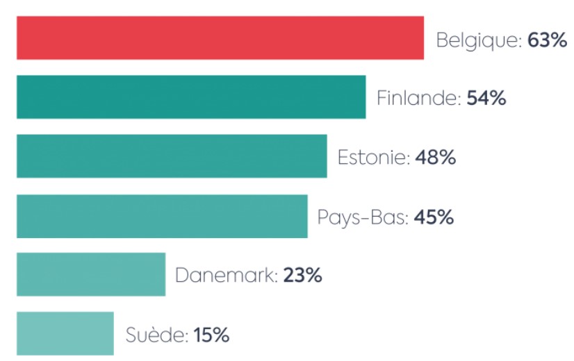 Cela signifie que la Belgique obtient de moins bons résultats que ses voisins. Aux Pays-Bas, par exemple, la majorité des paiements sont effectués par voie numérique. En effet, seulement 45 % de toutes les transactions effectuées dans les magasins néerlandais se font en cash. Le Danemark est quant à lui un exemple absolu en matière de paiements numériques. Là-bas, à peine 23 % des paiements sont encore effectués en espèces.