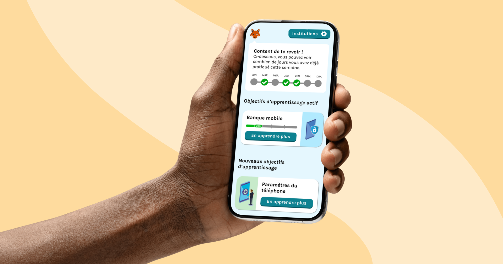 Le secteur bancaire entend offrir à chacun la possibilité d’apprendre à utiliser les services bancaires mobiles grâce à Digifacile, une application sûre et accessible. Mais Digifacile, c’est bien plus qu'une simple application pour s’exercer à l’utilisation de la banque mobile. Il s'agit d'une vaste plateforme d'apprentissage qui vise à renforcer les compétences numériques de tous ceux qui rencontrent aujourd'hui des difficultés avec le numérique, qu'il s'agisse de seniors, de jeunes, de nouveaux arrivants ou de personnes allophones, et de tous ceux qui souhaitent exercer leurs compétences numériques. L'application propose des modules axés sur les services bancaires mobiles, les achats en ligne, la configuration du téléphone, le stockage et le partage de fichiers, la prise de contacts en ligne, l'envoi d'e-mails, la planification d'itinéraires et l'utilisation de codes QR.