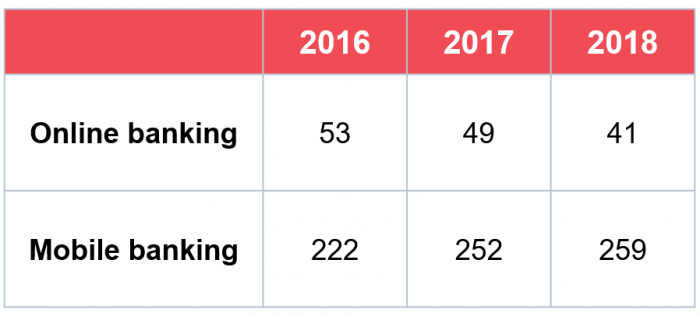 Alors que les services de banque mobile atteignent des sommets, la part des opérations en self-banking se contracte de plus en plus. En 2018, seuls 7 % de tous les virements ont été effectués auprès d’un guichet de self-banking. Dix ans plus tôt, on en était encore à 21 %.