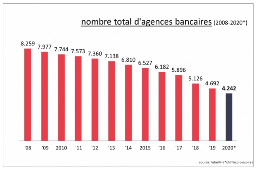 Toutefois, la contraction du réseau d’agences actuel est une évolution qui s’est amorcée il y a plusieurs années, et elle suit la tendance actuelle dans la société. C'est une évolution que l’on retrouve aussi dans d'autres pays européens. La Belgique possède toujours l'un des réseaux d’agences parmi les plus denses d'Europe.