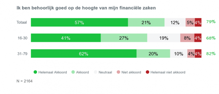 Nationaal onderzoek van Febelfin i.s.m. onderzoeksbureau Indiville bij 2164 Belgen tussen 16 en 79 jaar oud, waarvan 746 tussen 16 en 30 jaar oud (maart 2022).