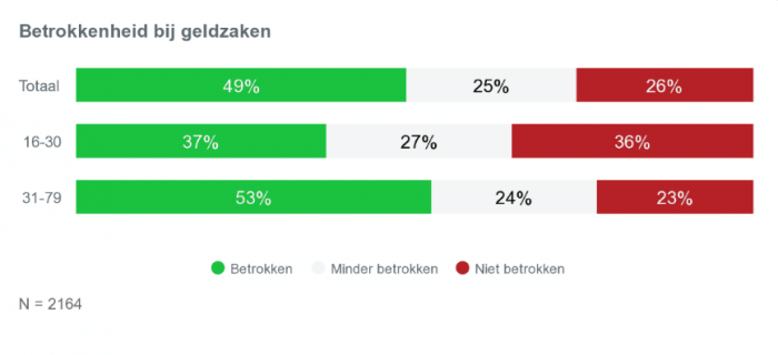 Een ander opvallend cijfer is dat minder dan één op de twee jongeren met zekerheid kan zeggen wat de bank met hun geld doet. Bovendien is amper 37% van de jongeren betrokken bij zijn geldzaken, wat een achteruitgang is in vergelijking met vorig jaar (44%).