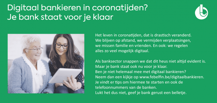 Voor wie er niet in slaagt om digitaal te bankieren, staat de bank klaar. Wie wil, kan zijn / haar bank telefonisch contacteren en vragen om hem / haar te helpen om de opstart te doen. Op de website staan de telefoonnummers van de bank netjes opgelijst.