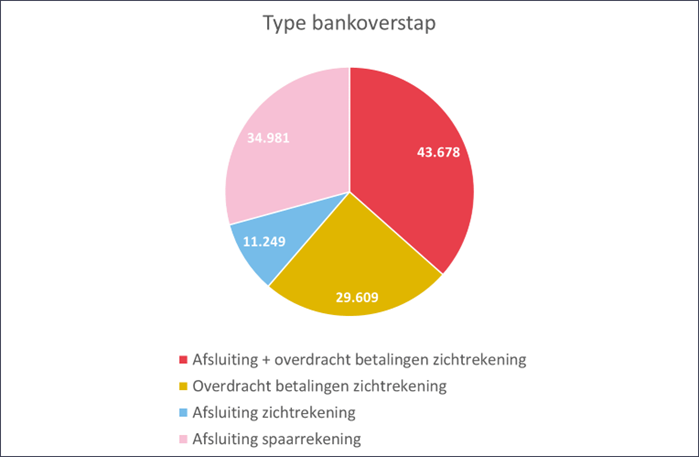 Sinds de lancering eind 2020 van de bankoverstapdienst voor spaarrekeningen, maken veel klanten hier ook gebruik van. In 2023 kozen 34.981 klanten voor een bankoverstap met afsluiting van hun spaarrekening, goed voor bijna een derde (29%) van de totale aanvragen via Bankswitching