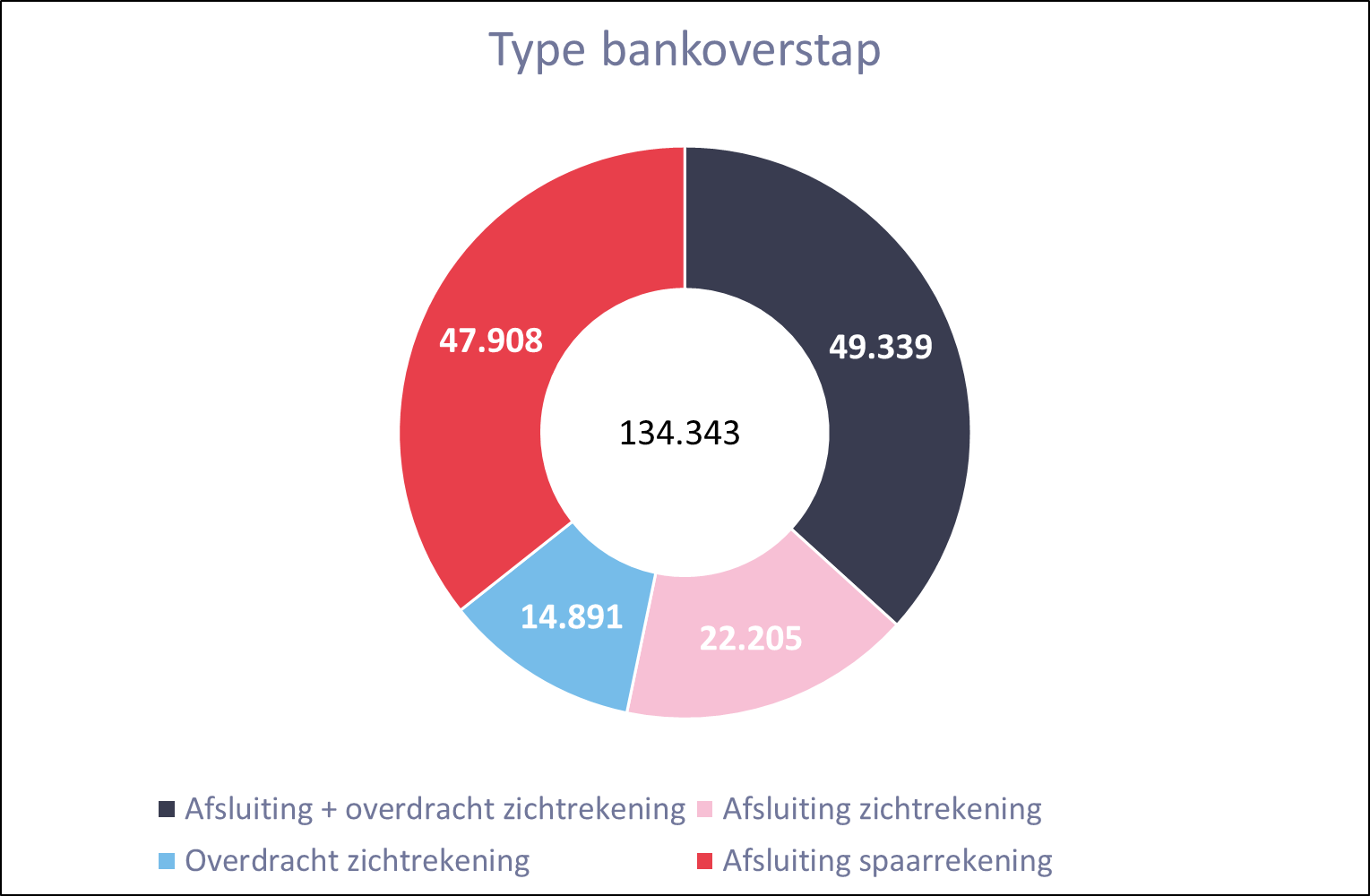 In 2024 dienden 134.343 klanten een aanvraag in om van bank over te stappen via de gratis bankoverstapdienst Bankswitching. Aan klanten die voor hun betaal- en spaarrekeningen willen overstappen naar een andere bank, biedt de bankoverstapdienst een snelle, makkelijke overstap zonder onderbreking van betaalopdrachten.