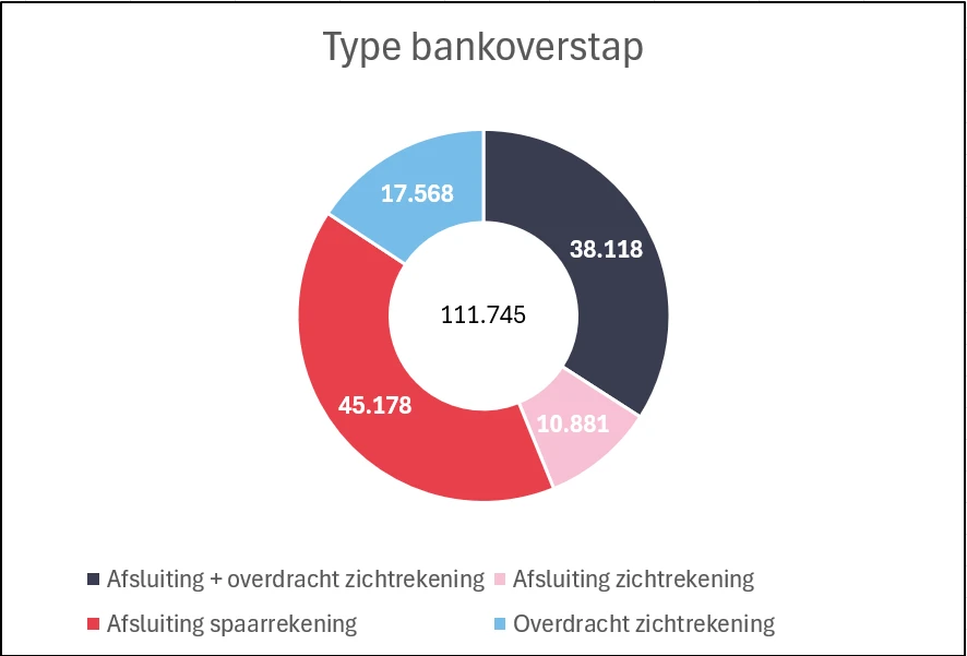 Sinds de lancering eind 2020 van de bankoverstapdienst voor spaarrekeningen, maken veel klanten hier ook gebruik van. In 2025 kozen 45.178 klanten voor een bankoverstap met afsluiting van hun spaarrekening.