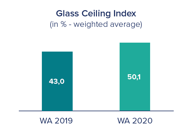 De GCI vergelijkt het percentage vrouwen op hoger managementniveau met het percentage vrouwen in het bedrijf als geheel. Dit geeft een indicatie van de dikte van het glazen plafond (hoe kleiner het cijfer, hoe dikker het glazen plafond is). Waar het om gaat is dat vrouwen aan de top even sterk vertegenwoordigd zijn als in de organisatie als geheel.