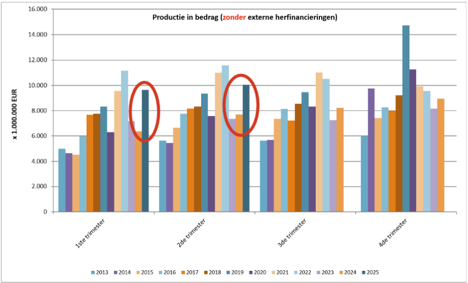 In het tweede kwartaal van 2025 werden iets minder dan 55.000 nieuwe kredieten verstrekt voor een totaalbedrag van iets meer dan 10 miljard euro – exclusief externe herfinanciering. Dit aantal, voor het tweede kwartaal van 2025, is vergelijkbaar met hetzelfde kwartaal van 2020.