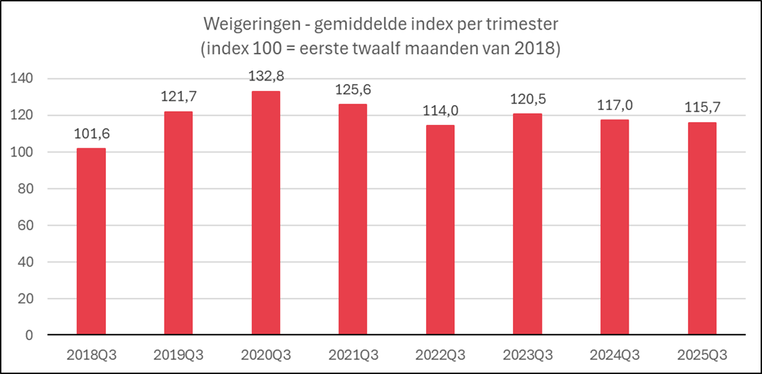 De weigeringsgraad lag in het derde trimester van 2025 op het op drie na laagste niveau van alle derde trimesters sinds 2018.
