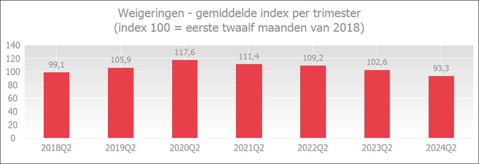 De weigeringsgraad lag in het tweede trimester van 2024 op het laagste niveau van alle tweede trimesters sinds 2018.