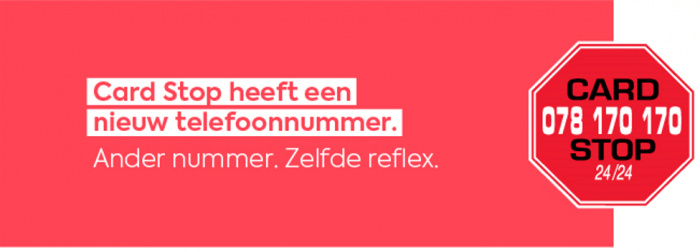Card Stop verandert van nummer. Het nieuwe nummer 078 170 170 treedt vandaag in werking. Het oude nummer 070 344 344 zal evenwel de komende jaren nog steeds in gebruik blijven om een vlotte transitie naar het nieuwe nummer te garanderen.