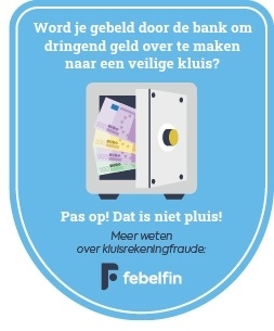 Onthoud dit: de bank zal je nooit vragen om je persoonlijke bankcodes door te geven of om geld over te schrijven naar een andere rekening via telefoon, mail, sms of social media.